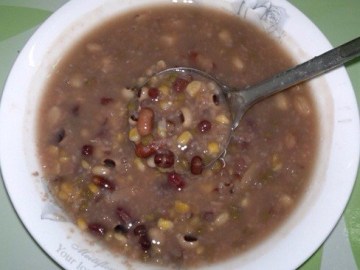 绿豆、花腰豆、红豆、小麦、玉米碎、眉豆、花生、大米、糯米(全部材料都是凭感觉抓一小把)