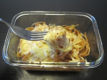 1、意大利麵1人份煮熟撈起放入耐熱碗。