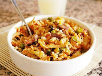 做法:1)大米洗净、豆角洗净切粒、土豆去皮洗净切1厘米见方的小丁、香肠切丁 2)上述准备好的材料和青豆、玉米粒一同放入电饭煲,加水没过所有材料一厘米,滴入几滴酱油,加两小勺盐拌匀 3)按正常煮饭程序至开关跳起后再焖10分钟4)加入榨菜和适量韩式辣酱拌匀即可