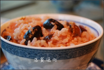 7、因为有红菇,所以焖好饭有点红色,好看。