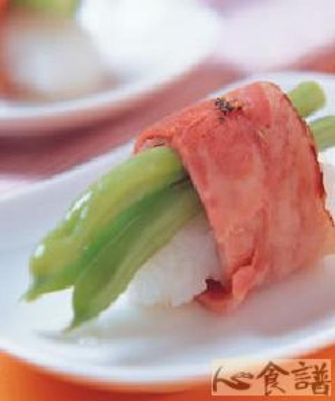 第一种:主食菜谱,四季豆培根卷做法