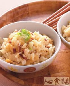 4、杂菜丝饭:把杂菜丝放在饭上同煮,饭熟时加入调味拌匀即可.