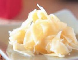 2.嫩姜切片,泡冷开水约3小时,取出用纱布拧干,再放入醋汁中浸泡1小时以上即完成。