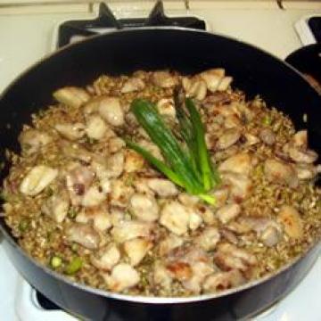 3、芦笋洗净切去根部较老的部分,切段倒入平底锅中,与鸡肉一起翻炒,可适当再加点盐和胡椒调味。