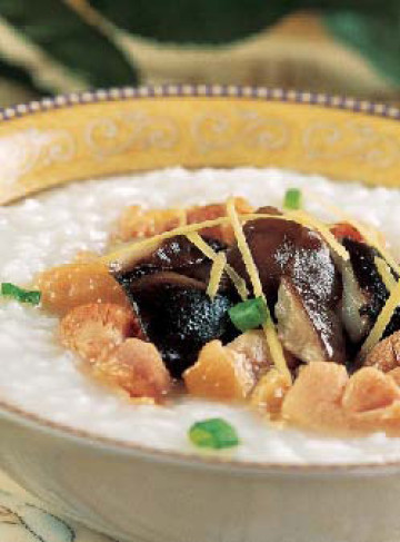 主料:米 150克 鸡胸脯肉 100克 冬菇 适量 鱼露 少许