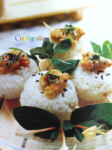 第一种:主食菜谱,唐扬鸡肉块饭团做法