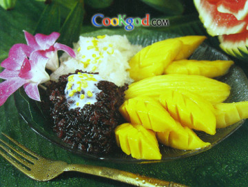 (3)食时鲜卡亡果起肉,切成小粒,与椰浆一同加于糯米上即可。