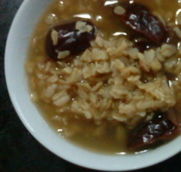 2.锅里加水烧开,煮一个半小时后薏仁软了的话,放入麦片,再煮30分钟就好了。