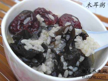 1.粳米250克,白木耳15克,加水适量,共煮成粥。