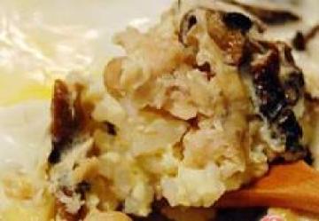 3、盛出一碗,可作为宝宝下饭菜,再加入米饭拌匀。