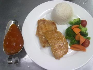 第二种:主食菜谱煎吞拿鱼排配米饭蔬菜做法