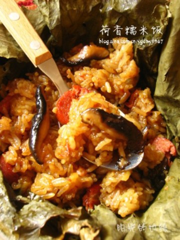 6、糯米饭馅料就做好啦,就这么尝了一口,香呀!