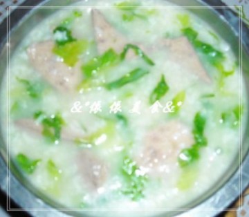 猪肝、大米各100克,菠菜150克,精盐、生姜、大葱各适量。