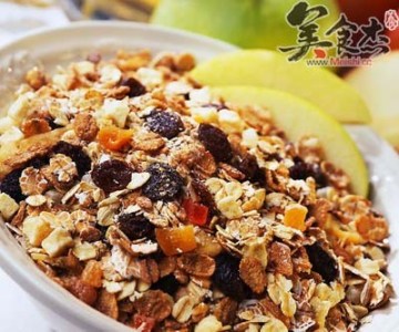 燕麦片80公克,胚芽2大匙,枸杞子1小匙,果糖15克