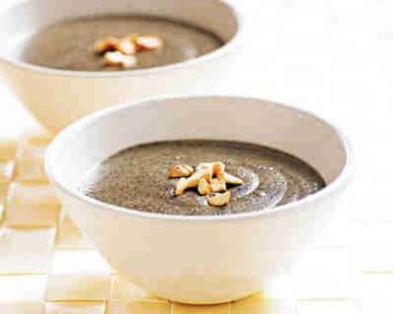 黑芝麻捣碎,大米淘净,加水适量,上火将二味煮成粥。