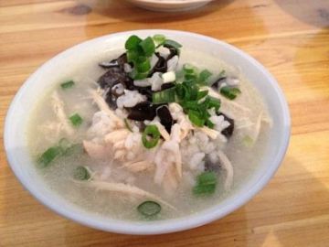 蒸蛋海米紫菜粥、绿豆稀饭、鸡蛋肉糜粥。