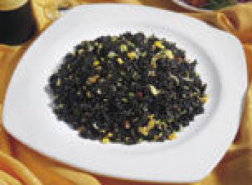 2、将猪肉切成丁,加油、精盐、料酒、胡椒粉炒熟,掺加淀粉成馅,然后将饭、馅拌成一起,用茶叶包成包袱状,上屉用旺火蒸约5分钟熟透即可,取出揭开荷叶即可食用。