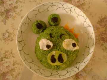 2.猪排沾一层低粉.洒上切碎的梅子.