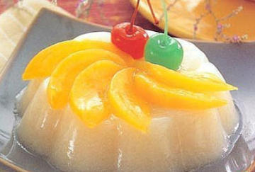晶莹剔透,吃到嘴里的感觉也很象果冻, 略微带点甜味,滑溜溜的,非常可口。也可以在牛奶中加入巧克力,做成巧克力幕斯哦!