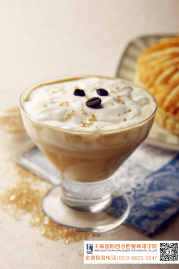 5.在咖啡面挤上鲜奶油。