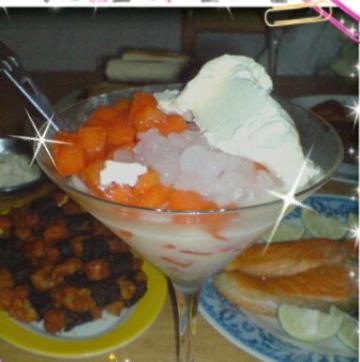 木瓜,西米,香草味冰淇淋,鲜奶