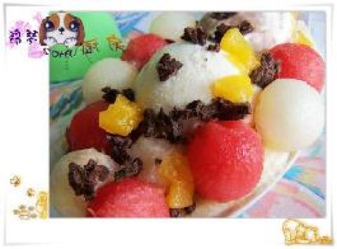 2.将冰淇淋用冰淇淋器(或者勺子挖成圆球状),我用烘培用的量勺挖的冰激凌球