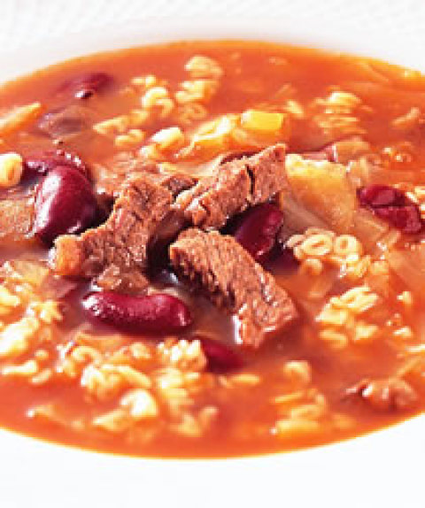 无骨牛小排300公克,高丽菜150公克,西洋芹100公克,红腰子豆120公克,牛高汤3500cc,字母面50公克,月桂叶2片,蕃茄煳2大匙,糖1小匙,盐1小匙