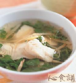 鲷鱼肉70公克,姜丝适量,鱼高汤600㏄,西洋菜适量,盐适量,米酒适量