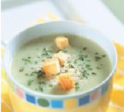 青花椰菜1/2个,法国面包2片,白酱1杯,水4杯,盐1小匙,糖1/2小匙,洋香菜末1/2小匙,起司粉1/2小匙