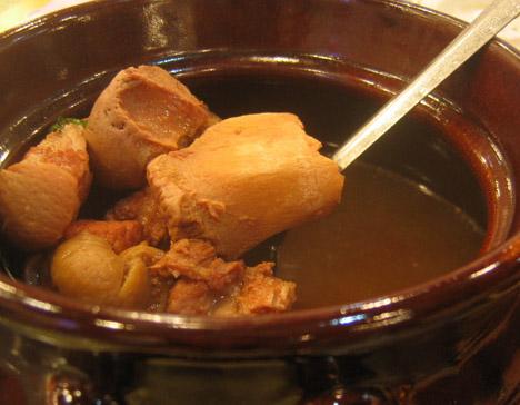 1.猪展飞水或者在大滚之前撇去浮沫,这是煲了一个多小时的样子.没下蜜枣之前,你看看汤色。