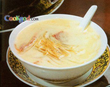 主料:母鸡鸡脯肉150克,熟火腿25克,肥猪肉膘50克,水发冬菇25克,水发玉兰片50克,荸荠50克,鸡蛋清2个,奶汤800克,清汤250克,湿淀粉10克,精盐2.5克,绍酒15克,味精1克,姜汁0.5克,葱油10克。