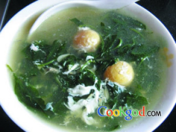 第五种:汤类菜谱咸蛋肉片滚枸杞叶汤做法