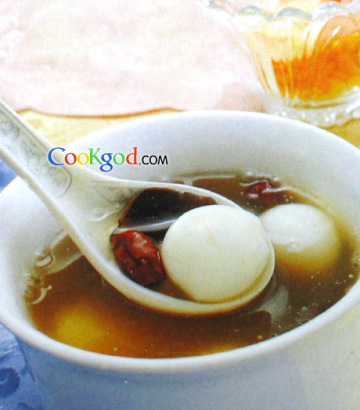 2、汤锅内加清水适量,放入白砂糖、冰糖煮至溶化,放入鹌鹑蛋、红枣烧透,用藕粉勾芡,翻匀装盘即成。