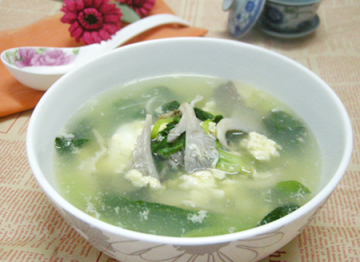 菊叶蛋汤、羊肉白菜汤、平菇鱼丸汤、木耳鸡汤、皮蛋黄瓜汤