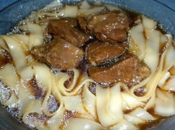4)最后浇上红烧牛肉汤即可。