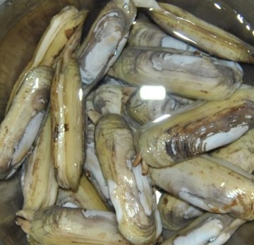 4.水开后加入蛏子。