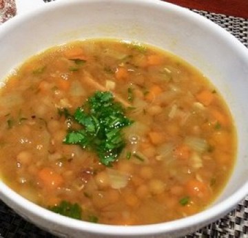 小扁豆400克,鸡汤2升,洋葱1个(切丁),番茄酱4汤匙,蒜头2个(捣碎),孜然粉1汤匙