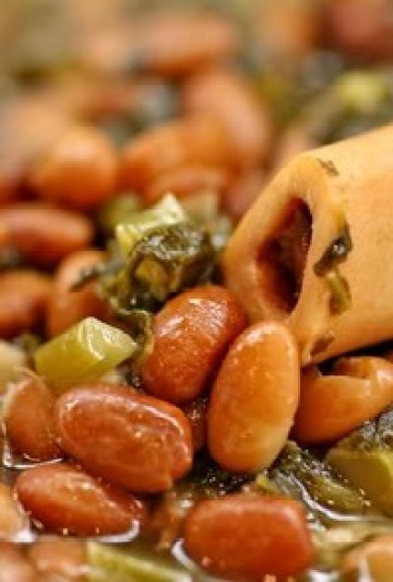 干豆子清洗干净,用水泡透,让后加入火腿骨头一起用锅慢慢熬煮至豆子软烂。在油锅中放入少量的,先将酸菜炒香,然后放入火腿和豆子,进行调味,调好味以后再熬煮几分钟,待酸菜味道渗出,汤汁浓稠后起锅。