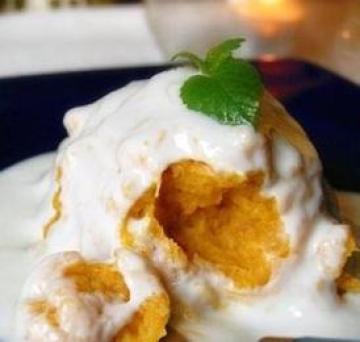 1.蒸熟南瓜泥,加入美乃滋,鲜奶油,法式芥末酱,(3:1:1:1)再加入少许橙汁拌匀.