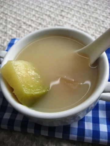 2、然后与其他材料一起煲一个半小时,用盐调味即可饮食。此汤可清热、除烦、止渴,还可加板豆腐同煲 。