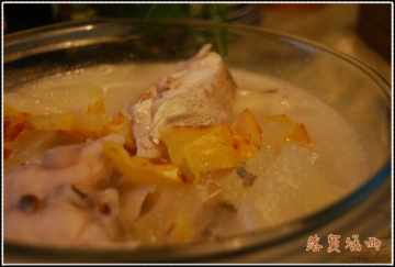 5、大火烧开,鱼汤成奶白色,下冬瓜煮开。