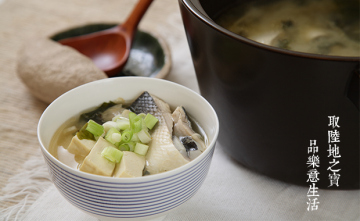 3.陶锅加水1600cc待煮开,放入薑丝及虱目鱼肚,汤滚后加入海带芽及柴鱼片,再次煮滚 后,加入备好的味噌及蛤蜊肉煮30秒,最后加入米酒、葱花,淋上香油关火即可。