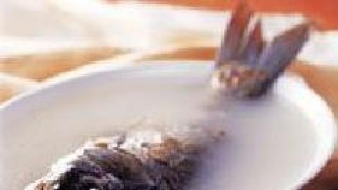 先将鲤鱼去鳞及肠肚,将黑豆放入腹中,缝合,加水熬煮至鱼烂豆熟成汁。