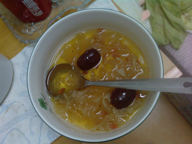 银耳有美容的功效噢,女孩子要多吃些,别人说银耳是不能放过夜的,所以一次不要煮太多免得吃不完浪费了。