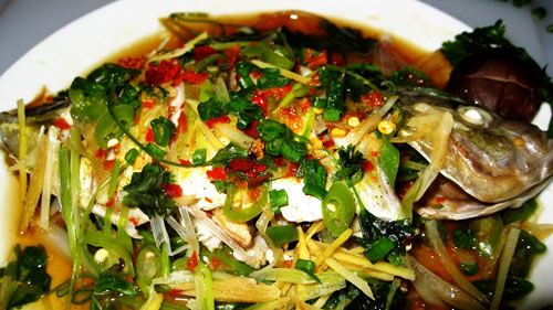 吃多红烧鱼怕上火,另外也想换换口味,所以就试了试清蒸鱼,加入了很多调料,味道独特,鲜美,鱼肉也非常鲜嫩,很不错哟。