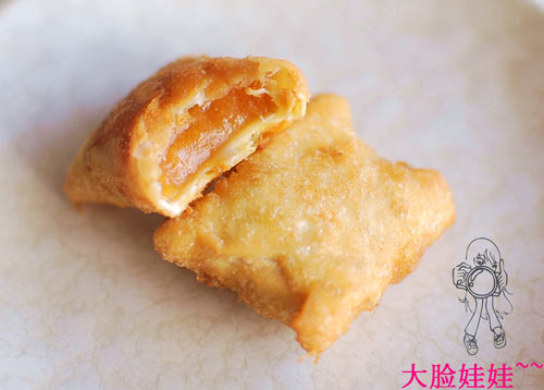 好吃哦!外酥里软,恰到好处。lg超爱这口炸年糕,还说吃起来象麦当劳的xx派,哈哈,还真是左看右看上看下看,颜色香味口感脆度,真的很象呢!
