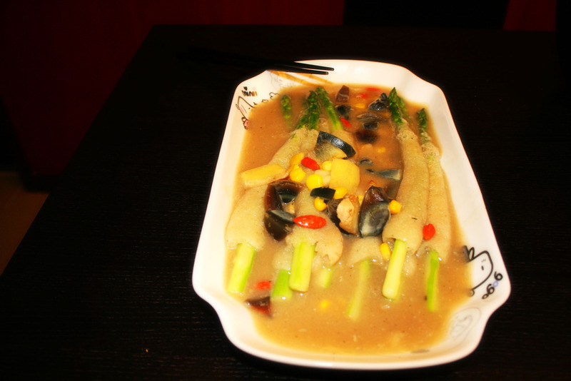 及以下步骤:把竹荪泡开,去掉底部和头部,过热水煮一下。芦笋洗净,去掉表面老皮,烧开热水,放入少量盐和油,放入芦笋焯一下,取出,过凉水备用。 把芦笋插入竹荪里。 把竹荪泡开,去掉底部和头部,过热水煮一下。芦笋洗净,去掉表面老皮,烧开热水,放入少量盐和油,放入芦笋焯一下,取出,过凉水备用。 把芦笋插入竹荪里。 把竹荪泡开,去掉底部和头部,过热水煮一下。芦笋洗净,去掉表面老皮,烧开热水,放入少量盐和油,放入芦笋焯一下,取出,过凉水备用。 把芦笋插入竹荪里。 把皮蛋切小块,玉米粒过热水。 热锅,少许油,放入姜蒜片爆香,注入适量清水,放入浓汤宝以及一匙汤皇,煮开后加入皮蛋和玉米粒,注入料酒,小半匙糖。 放入酿好的芦笋煮一下,捞出装盘。 剩余高汤勾芡出锅,均匀浇在芦笋上。