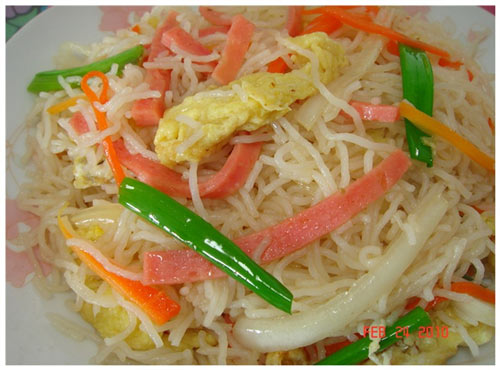 炒粉时需注意.调味料尽量在炒配菜时一次性放够. 以减少米粉在锅里翻炒的次数.这样就不至于将米粉炒得糊烂.要不.米粉就真正成粉了哦
