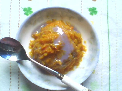南瓜(一小块) / 蓝莓炼乳(适量)