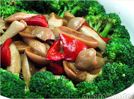 及以下步骤:鲍鱼菇。 西兰花。 鲍鱼菇。 西兰花。 鲍鱼菇。 西兰花。 将鲍鱼菇洗净切片。 汆熟待用。 将西兰花汆熟装盘。起油锅,将调料入锅调好味道,下鲍鱼菇拌好,然后用水淀粉打个芡。 成了,简单又好吃,味道不错。